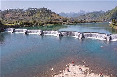 4月7日,杭州市临安区昌化镇党员巡河护水志愿者在昌化溪河边巡查,清理各类垃圾(无人机照片)。近年来,昌化镇成立以党员志愿者、村级监察联络员为核心的党员巡河护水志愿者队伍,对镇域范围内的沿河环境开展日常巡查,实施网格化管理,发现问题及时解决,打造水美生态好家园。