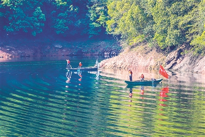 金峰乡将境内30公里赛道沿线的湖区划成了4个片区、8个网格,并组建了一支“净湖卫士”志愿服务队,专门开展水上垃圾打捞和水上安全巡查。
