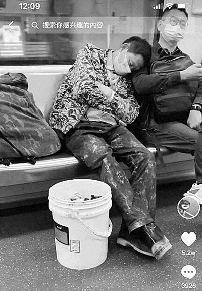 本报讯 4月17日开始,一段发生在杭州地铁上的视频上了微博热搜,大致内容为“小伙子一动不动,借肩膀给睡着的民工兄弟靠”。
