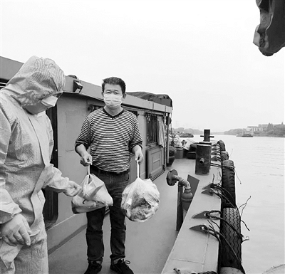 本报讯 “船上蔬菜快吃完了,能不能给我们送点?”18日上午8点半,杭州鸦雀漾锚地的隔离船舶微信群里,隔离船员张应福发出了这样一条信息。由杭州市交通运输行政执法队内河港航执法大队队员组成的“水上外卖小哥”立刻行动,上午10点就把新鲜蔬菜送到了船上。记者看到,里面装有莴笋、萝卜、土豆、辣椒等,满满三大包。
