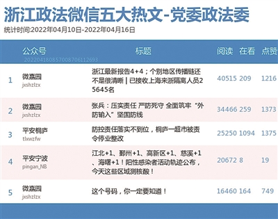 本期政法委榜,“微嘉园”继续蝉联第一。当前疫情在各地多点散发,位居前五的热文有四篇是与疫情相关的话题,疫情防控,需要大家共同努力。