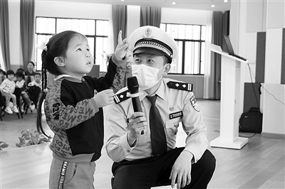 4月26日下午,临海交警联合临海市中心幼儿园开展交通安全进校园活动。交警根据小朋友的年龄认知特征,通过播放宣传片、练习手势操等形式,讲解交通安全知识,并希望孩子们能带动家长一起遵守交规,增强法治意识。