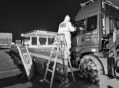 连日来,长兴县交通运输综合行政执法队在S14煤山东服务区等卡点开展疫情防控工作。执法人员严格查验“双码”,确保“不漏一人、不漏一车”。通讯员 孙婕 摄