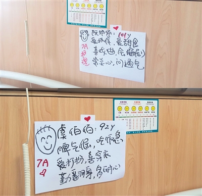 | 概括患者性格特点及主要护理点的“个性化床贴”。(受访者供图) |