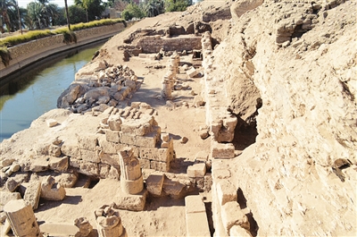 这张未标明拍摄时间的照片显示的是埃及南部索哈杰省发掘出的一座神庙遗址。