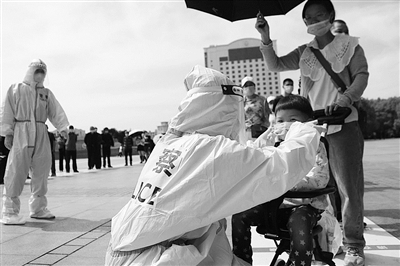 近日,临海市一核酸检测点位,古城派出所民警见一名小朋友没有戴口罩,及时为孩子佩戴上口罩。连日来,临海全市范围增设一批免费核酸检测点位,该所积极配合街道做好安保工作。