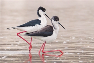 一群长腿鹬优雅身姿映照在水面,“鸟中大熊猫”黑鹳悠然觅食,白鹭在水面翩然起舞……伴随着“咔嚓、咔嚓”的快门声,这些湿地精灵们的身影接连被镜头捕捉、定格。