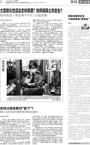 本报讯 5月10日上午,杭州市人大常委会召开《杭州市大型群众性活动安全管理规定》(以下简称《规定》)新闻发布会,介绍相关情况。据了解,《规定》将于今年6月1日起正式实施。
