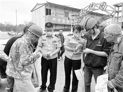 近日,龙游县公安局民警走进辖区工地,开展反诈禁毒宣传活动,通过展示毒品仿真样品、案例分析、发放宣传单等形式,帮工友们筑牢禁毒防线和反诈骗防火墙,受到了一致好评。