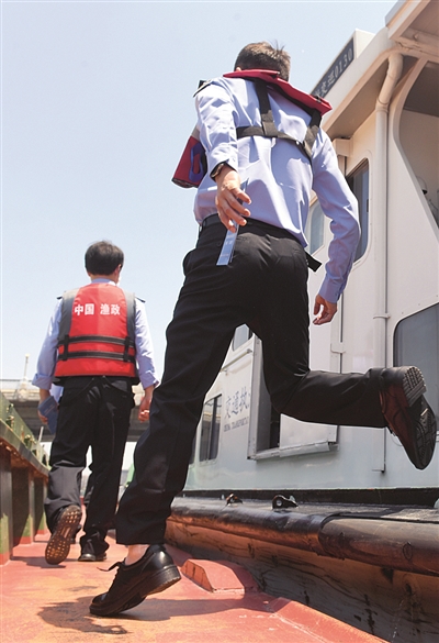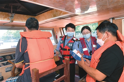 “新实行的运河禁渔制度了解吗?一定要告知到每一名船员,严格遵守相关法律法规。”渔业执法大队大队长梅杰向船老大了解情况,并向船员发放禁渔须知等宣传册。