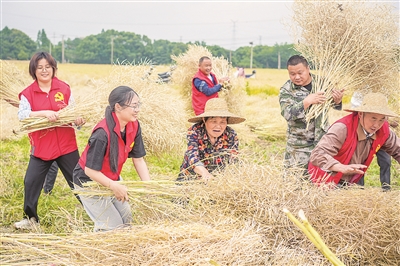 正值油菜籽成熟收割季节,针对部分农户劳力短缺问题,长兴县吕山乡组织党员成立志愿助农队,利用闲余时间走进田间帮助收割油菜,确保农户增产增收。吴拯 摄