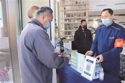 3月7日,去银行办理业务的杨大叔在门口扫描二维码后,即完成登记可进入银行。“以前要一个个排队登记,现在直接扫码就能登记,方便多了。”杨大叔对智能登记赞不绝口。