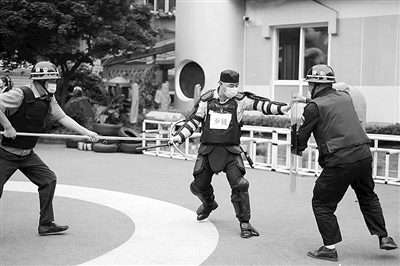 近日,温州市公安局龙湾区分局状元派出所民警前往龙湾区第一幼儿园,组织开展校园反恐防暴处突演练,为校园安保人员教授先期处置、防暴制暴等技能,提高他们处置暴恐事件的能力。