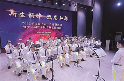 活动在线上举行。浙江修心教育大使谢丽娟与民盟爱心人士为未成年罪犯捐赠爱心礼包,并欣赏了少年铜管乐队的汇报演出。