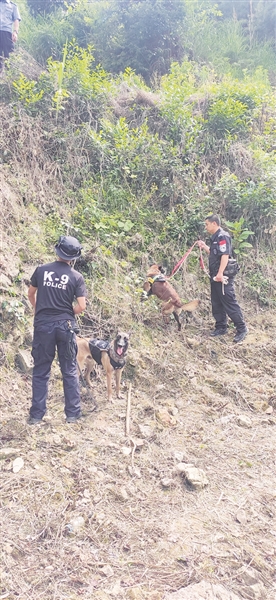 去年4月29日,松阳西部山区一名有智力障碍的女子在农贸市场走失。我们接到属地派出所求助时,她已失踪18个小时。我立即带着地瓜加入搜寻队伍。地瓜沿着女子的气味一路追踪,7小时后找到了奄奄一息的女子。