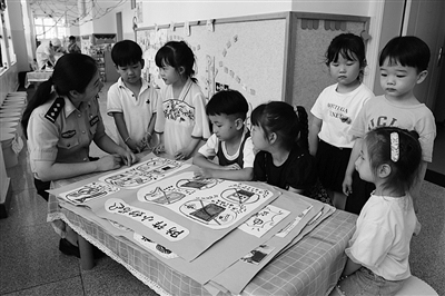 近日,温岭石桥头派出所民警来到石桥头镇中心幼儿园,拿出精心绘制的反诈漫画,给孩子们讲授反诈小知识。