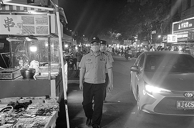 连日来,台州椒江警方加大了夏季夜间对夜市、街头、娱乐场所等地的巡逻防控力度,提高见警率,震慑违法犯罪,增强群众出行安全感。图为洪家派出所民辅警在夜市巡逻。