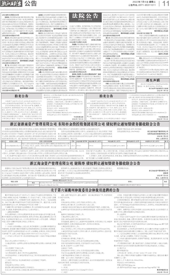 浙江省浙商资产管理有限公司 东阳市金投控股集团有限公司 债权转让通知暨债务催收联合公告