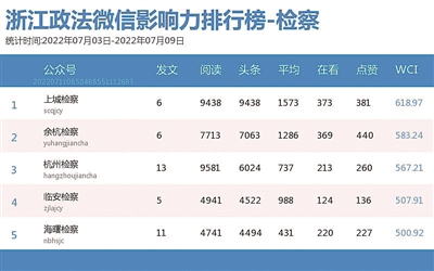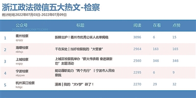 本期检察院榜,冠军宝座由“上城检察”拿下。热文榜上,“衢州检察”的《新鲜出炉!衢州市优秀公诉人名单揭晓》一文,获得第一名好成绩。