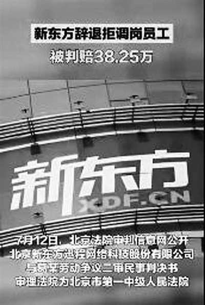 新东方辞退拒调岗员工被判赔38.25万