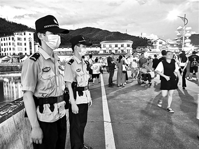 近日,在龙游县溪口音乐节现场,随处可见民警无惧高温“烤”验、坚守巡控一线、守护平安、服务百姓的最美风“警”。