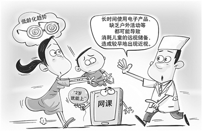 随着儿童“触屏”年龄越来越小,三四岁上网课、五六岁成“小眼镜”的情况并不鲜见。教育部曾发布指引建议,0-3岁幼儿禁用手机、电脑等视屏类电子产品,3-6岁幼儿也应尽量避免接触和使用。但记者发现,随着网课市场不断拓宽,网课低龄化趋势明显,向家长输出焦虑的同时,电子产品对孩子视力的影响也不容忽视。新华社 王鹏 作