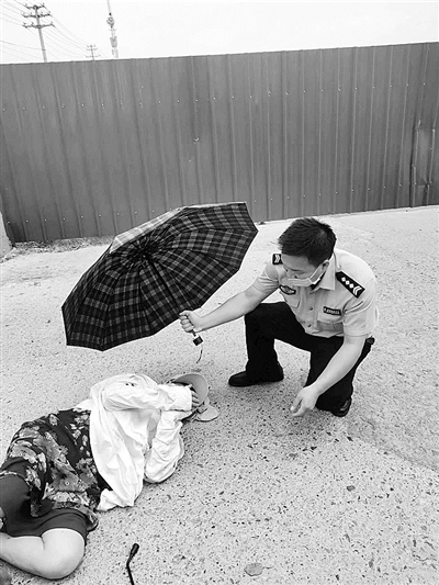 近日,温州龙湾海滨街道蓝田菜场兰浦路路口处,一名女子突然晕倒。海滨派出所辅警吴约西、项有绍正好巡逻至此,赶紧上前查看,拨打“120”后,主动为女子撑伞遮阳,并指挥路过车辆注意避让。