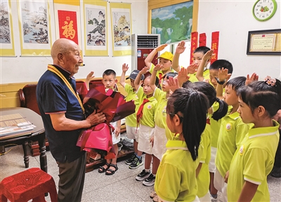 八一建军节到来之际,7月28日,淳安县千岛湖镇第六小学学生,在老师带领下看望104岁的抗战老兵徐梦西,并为他送去慰问品和鲜花。徐梦西1919年出生,先后任第三战区奋勇纵队上尉爆破组组长,第三战区奋勇纵队南京总队联络站站长,南京教导团少校副营长、营长。1944年4月,调回至第三战区奋勇纵队第三支队任少校中队长直至抗战胜利。“聆听老兵的抗战故事,让我们对当年抵御外敌的历史有了更深的了解。”学生蒋语禾说。