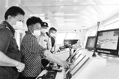 7月28日,在三门县健跳渔港码头,民警和渔政工作人员在渔船驾驶室检查设备运行情况。8月1日起,桁杆拖虾渔船和笼壶类(包括蟹笼)以及流刺网渔船将结束休渔,开始出海捕捞作业。为保障渔船海上安全作业,由当地渔政、公安、应急、卫生等部门组成的服务小分队,上渔船开展安全检查,向渔民讲解禁毒知识和船员海上受伤处置等,提高渔民安全意识。通讯员 林利军