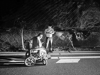 本报讯 7月26日晚上9点多,开化县公安局齐溪派出所民警夜巡时,发现一位老人坐着轮椅停在路边。民警立即上前处置。