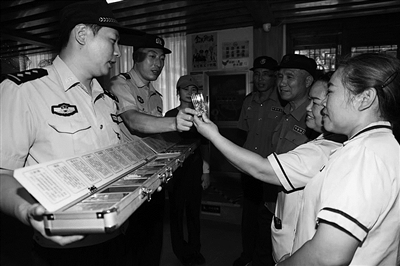 近段时间,民宿、农家乐等迎来大批客人。连日来,台州市公安局黄岩分局组织民警走进民宿、农家乐,对从业者、工作人员等开展涉毒涉赌普法宣传。图为该局宁溪派出所民警走进辖区某民宿,向工作人员展示毒品仿真样品,提高他们的防毒能力。通讯员 王淑燕 金心怡