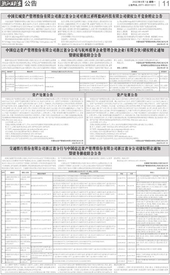 交通银行股份有限公司浙江省分行与中国信达资产管理股份有限公司浙江省分公司债权转让通知 暨债务催收联合公告