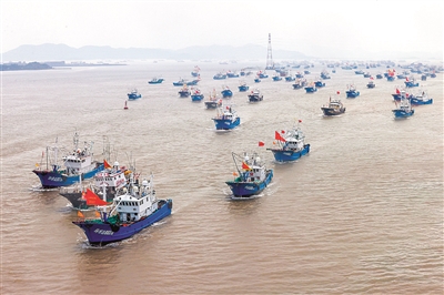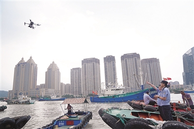 8月1日中午12时起,单船桁杆拖网(桁杆拖虾)、笼壶类、刺网和灯光围(敷)网类作业渔船结束伏休,扬帆开捕。当天上午,舟山市公安局普陀区分局海防缉私大队联合沈家门派出所利用警用无人机加强港区巡逻,开展安全宣传,全力护航开捕。