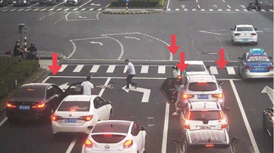 与此同时,右边直行车道排队通行的小车,也纷纷停了下来,几位市民不约而同地下车向孩子冲去。