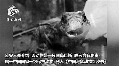 近日,北京市东城区前门消防救援站接到报警,一住户在家中意外发现一只大蜥蜴。接警后,消防站迅速出动,将其抓获后移交民警。警方介绍,该动物为圆鼻巨蜥,唾液有剧毒,属于国家一级保护动物,被列入《中国濒危动物红皮书》。案件正进一步调查中。