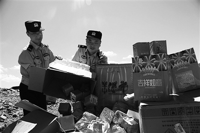 近日,岱山县公安局治安大队会同县应急管理局、县华兴烟花有限公司在东沙镇西垦山矿区,集中销毁一批烟花爆竹。这些烟花爆竹为前期工作中查获收缴的假冒伪劣产品,有土造礼花弹、伪劣烟花、鞭炮等,共450余件。通讯员 张志龙