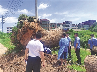 2021年6月,湖南省浏阳市金刚镇一村里两株挂牌古樟树异常枯死。警方摸排发现,这背后指向了一条毒死活树再倒卖牟利的犯罪链。经过一年多的侦查,警方抓获犯罪嫌疑人20人,在湘赣两省九县查明涉案古树43株,其中有35株遭到毒害。