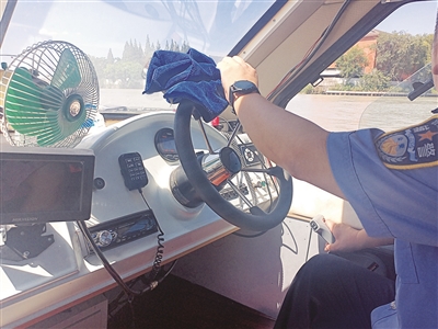 “今天的水面巡查算是很轻松了。如果遇到大型活动,我们还要联合海事部门进行全面安检,衣服湿了又干干了又湿,那个酸爽!”两个多小时的水面巡逻结束,老胡挥着被晒得黑里透红的手臂和记者告别,“回去记得涂点润肤露,千万别晒伤了。”