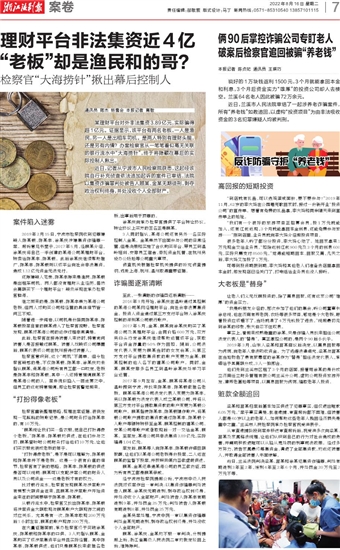某理财平台对外非法集资3.89亿元,实际骗得超1亿元。证据显示,该平台有两名老板,一人是渔民,另一人是出租车司机。是两人特别有理财头脑,还是另有内情?办案检察官从一笔笔看似毫无关联的银行流水中“大海捞针”,终于将隐藏在幕后的实际控制人揪出。