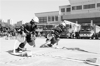 近日,台州市路桥区消防救援大队组织开展2022年度多种形式消防队伍岗位技能竞赛,通过一人三盘水带连接操、单人攀登六米拉梯操等8个项目的比试,进一步提高了消防救援队伍的业务素质。
