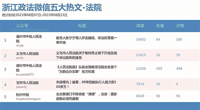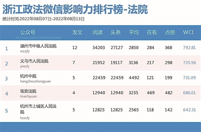 法院榜上,“温州市中级人民法院”凭借《被告人张宁宁等人开设赌场、非法经营案一审开庭》这一推文登上两榜榜首。开设赌场、非法经营,绝不容忍!
