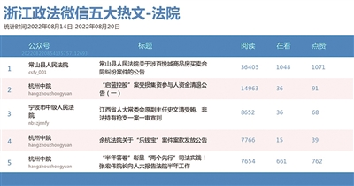 本期法院榜,黑马“常山县人民法院”拿下两榜第一,该公众号《常山县人民法院关于涉百悦城商品房买卖合同纠纷案件的公告》一文获得广泛关注。