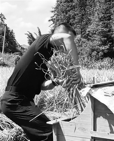 近日,江西赣州,消防员下乡宣传时,遇到两位收稻谷的老人求助。老人原本只想让消防员帮忙抬打谷机,没想到他们当即留下来帮忙收稻谷。大家同心协力,用了2个小时,将约400平方米的两块田地全部收完。