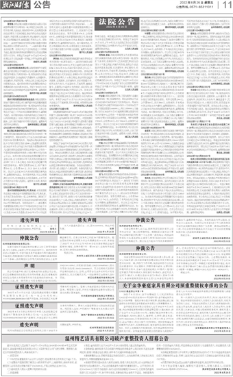 关于金华豪庭家具有限公司预重整债权申报的公告