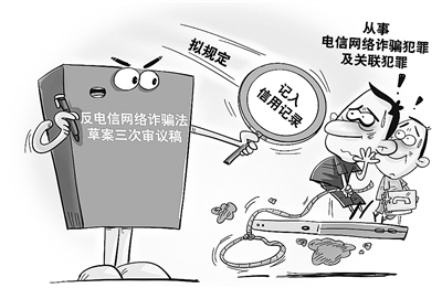 记者8月26日从全国人大常委会法制工作委员会发言人记者会获悉,即将提请全国人大常委会会议审议的反电信网络诈骗法草案三次审议稿拟规定,对从事电信网络诈骗犯罪及关联犯罪的人员,可以按照国家有关规定记入信用记录,并采取相应的惩戒措施。
