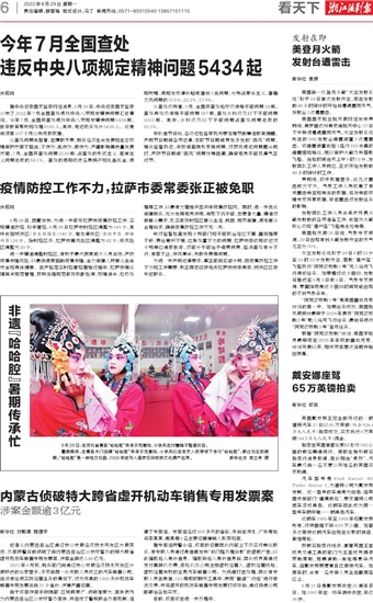 今年7月全国查处 违反中央八项规定精神问题5434起