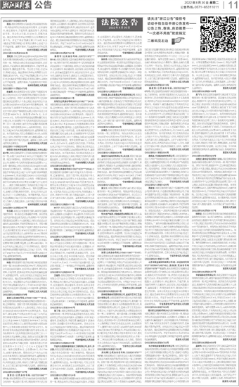 (2022)浙0206民初4199号 朱翠(公民身份号码:2108811985****5101):本院受理原告张靖与被告朱翠房屋租赁合同纠纷一案,因你下落不明,现依照《中华人民共和国民事诉讼法》第九十五条的规定,向你公告送达起诉状副本、应诉通知书、举证通知书、开庭传票、诉讼须知、诉讼风险提示书、法官廉政监督告知书、外网查询告知书等材料。原告起诉要求被告偿还欠款28700元。限你自本公告发出之日起30日内来本院诉讼服务中心领取相关材料,逾期则视为送达。提出答辩状和举证的期限为公告送达期满后的15日内。本案定于2022年10月27日上午9时在本院第九审判庭公开开庭审理,逾期将依法缺席判决。宁波市北仑区人民法院(2022)浙0206民初2801号 贵州硕博建材贸易有限公司、盐城市艺寻工艺品设计有限公司:本院受理原告杭州轻尘电子商务有限公司与被告遵义市永和城置业有限公司、重庆建工住宅建设有限公司、遵义市众合鼎盛建材有限公司、贵州硕博建材贸易有限公司、盐城市艺寻工艺品设计有限公司、宁波步凡供应链有限公司票据追索权纠纷一案,已审理终结。被告重庆建工住宅建设有限公司因对判决不服,提出上诉,你们无法采用其他方式送达,现依照《中华人民共和国民事诉讼法》第九十五条的规定,向你们公告送达上诉状,上诉请求如下:1、撤销宁波市北仑区人民法院作出的(2022)浙0206民初2801号民事判决书,并依法驳回被上诉人杭州轻尘电子商务有限公司在本案中对上诉人重庆建工住宅建设有限公司的全部诉讼请求;2、本案一审、二审诉诉讼费、保全费由被上诉人负担。限你们自本公告发出之日起30日内来本院民二庭领取相关材料,逾期则视为送达。宁波市北仑区人民法院(2022)浙0206民初1563号 郑尚青(公民身份证号码:3326261978****1679):本院受理原告宁波市北仑区小港力天钢板桩出租站与被告郑尚青租赁合同纠纷一案,已审理终结。因你下落不明,现依照《中华人民共和国民事诉讼法》第九十五条的规定,向你公告送达(2022)浙0206民初1563号民事判决书。判决如下:被告郑尚青于本判决生效之日起七日内支付原告宁波市北仑区小港力天钢板桩出租站人民币52000元。如果未按本判决指定的期间履行给付金钱义务,应当依照《中华人民共和国民事诉讼法》第二百六十条及相关司法解释之规定,加倍支付迟延履行期间的债务利息(加倍部分债务利息=债务人尚未清偿的生效法律文书确定的除一般债务利息之外的金钱债务×日万分之一点七五×迟延履行期间)。案件受理费1100元,公告费650元,由被告郑尚青负担(公告费原告已缴纳,由被告在履行义务时一并支付)。限你自本公告发出之日起30日内来本院小港法庭领取判决书,逾期则视为送达。如不服本判决,可在判决书送达之日起15日内,向本院递交上诉状,并按对方当事人的人数提出副本,上诉于浙江省宁波市中级人民法院。逾期本判决即发生法律效力。宁波市北仑区人民法院(2022)浙0206民初3019号 潘成阳(公民身份号码:3507831982****0737):本院受理原告徐海荣与被告民间借贷纠纷一案,已审理终结。因对你采取其他方式无法送达,依照《中华人民共和国民事诉讼法》第九十五条的规定,现向你公告送达(2022)浙0206民初3019号民事判决书。判决如下:被告潘成阳应于本判决发生法律效力之日起七日内归还原告徐海荣借款39700元。如果未按本判决指定的期间履行给付金钱义务,应当依照《中华人民共和国民事诉讼法》第二百六十条及相关司法解释之规定,加倍支付迟延履行期间的债务利息(加倍部分债务利息=债务人尚未清偿的生效法律文书确定的除一般债务利息之外的金钱债务×日万分之一点七五×迟延履行期间)。本案受理费793元,公告费650元,合计1443元,由被告潘成阳负担。如不服本判决,可以在判决书送达之日起十五日内,向本院递交上诉状,并按对方当事人或代表人的人数提出副本,上诉于宁波市中级人民法院;也可以在判决书送达之日起十五日内,向浙江省宁波市中级人民法院在线提交上诉状。逾期本判决即发生法律效力。宁波市北仑区人民法院