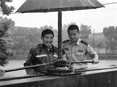 | ▲ 宁波海曙洞桥派出所民警密切关注辖区主要河流水位变化情况 |
