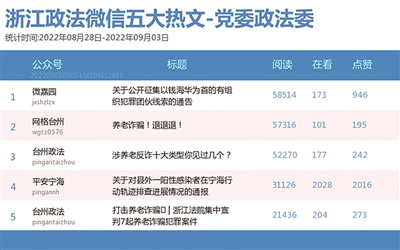 本期政法委榜上,“微嘉园”再次蝉联冠军宝座。纵览前五热文,有三篇皆是与防范养老诈骗有关的内容。反诈知识学起来,大家一起对养老诈骗说“退”。