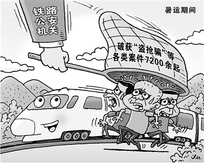 记者近日从公安部铁路公安局获悉,今年全国铁路暑运期间,铁路公安机关共侦破“盗抢骗”等各类案件7200余起,查处治安案件3.1万余起,抓获违法犯罪嫌疑人3.4万余名。